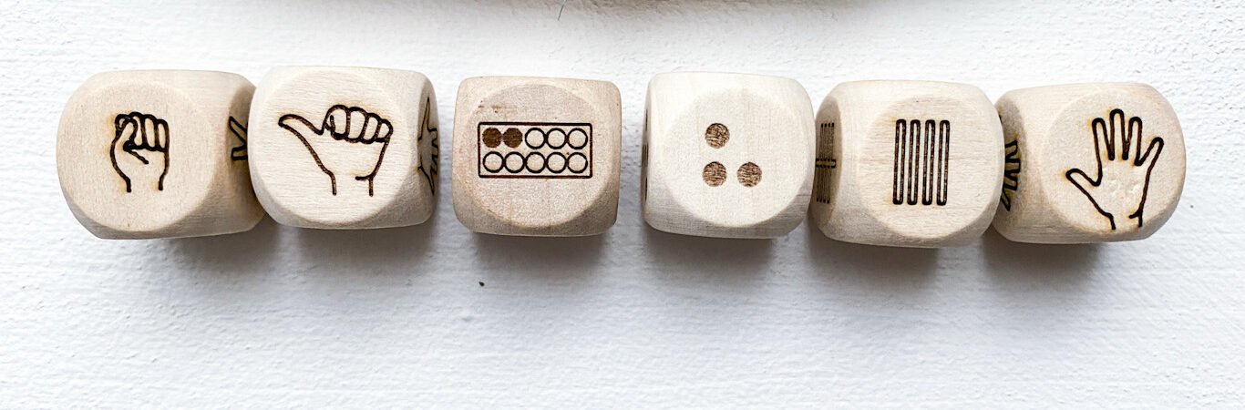 Auf diesen Würfeln sind Zahlen als Striche dargestellt, wie beim Abzählen oder Notieren von Strichlisten. Das hilft den Kindern, Mengen grafisch darzustellen – super für spätere Rechenaufgaben.