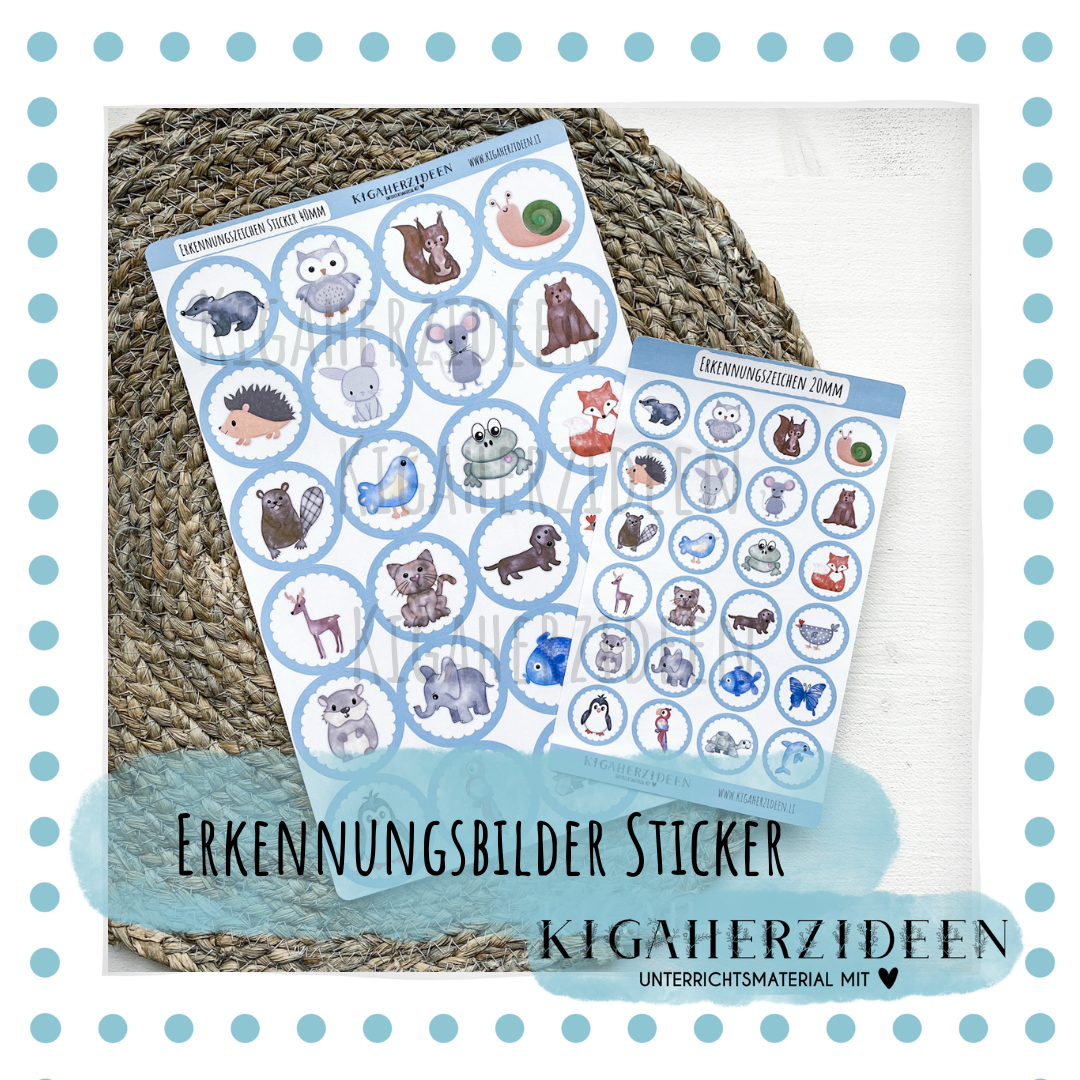 Diese Sticker eignen sich perfekt um im Kindergarten Ordnung zu schaffen und den Kindern zu helfen ihren Platz und ihr Material zu finden. Die Sticker können auf Stühle, an die Garderobe, auf Klebestifte, Farbenschachteln,… usw. geklebt werden.